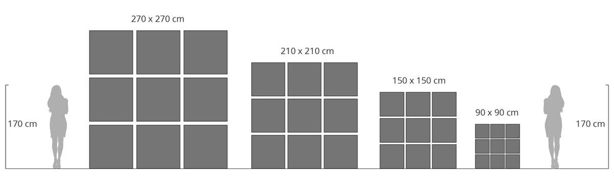 9-Teilig Quadratisch 270 x 270 cm 9 9 x 90 x 90 cm 12.3 kg